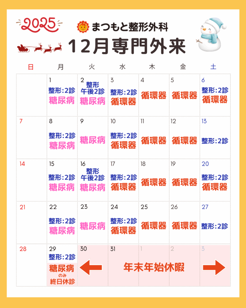 ・2025年12月29日(月)午前診療(9:00~13:00)